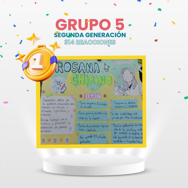 Se presentaron un total de 9 trabajos donde las mujeres Steam que las estudiantes investigaron podemos destacar a: Dionicia Gamboa, Lucero Cahuana, Isabel Gonzales, Johana Alfaro, Carmen García, Mónica Gomez, Fabiola León Velarde y Rosana Chirino. Se obtuvo un total de 1096 reacciones distribuidas entre todos los afiches.